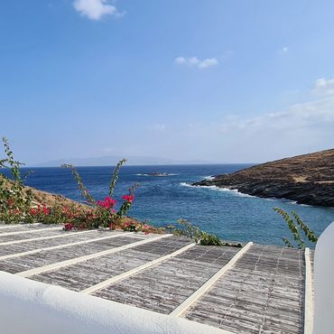 ‘Αγκυροβολημένη’ στο κέντρο των δυτικών ΄Κυκλάδων, στη Κύθνο στο μικρό Σιμουσί, σε ένα από τα πιο ‘ψαγμένα’ ήσυχα σημεία, εναρμονισμένη με το μπλε και άσπρο του Αιγαίου.